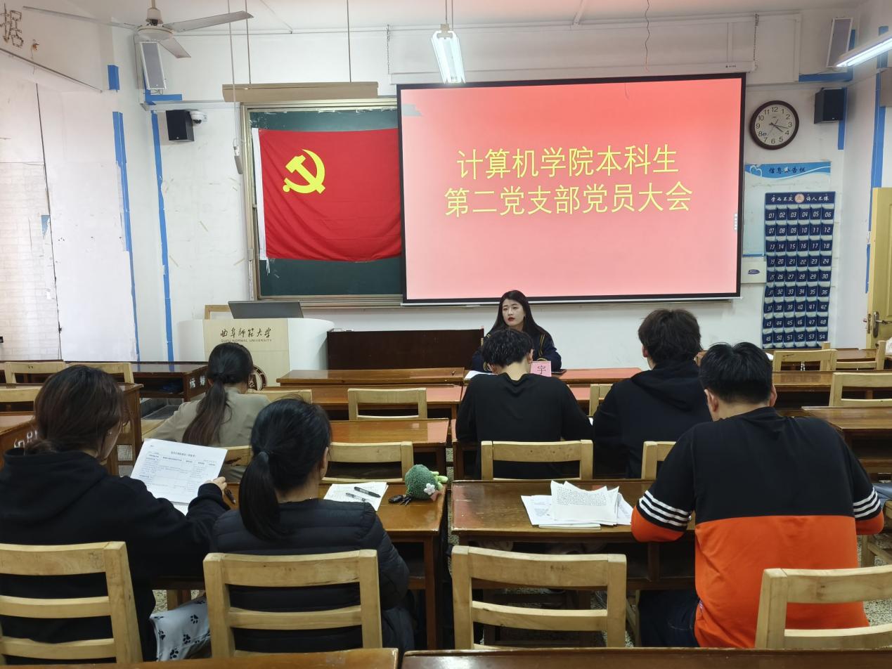 本科生第二党支部于JC406召开党员大会,全体党员参与。