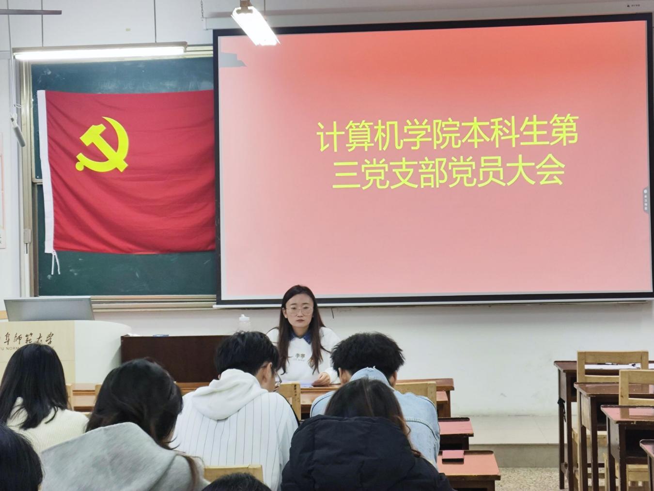 为进一步加强党支部队伍建设,培养优秀党员,保持党组织的活力与新鲜血液,2024年11月8日,计算机院本科生第三党支部于JC408召开党员大会,全体党员参与。