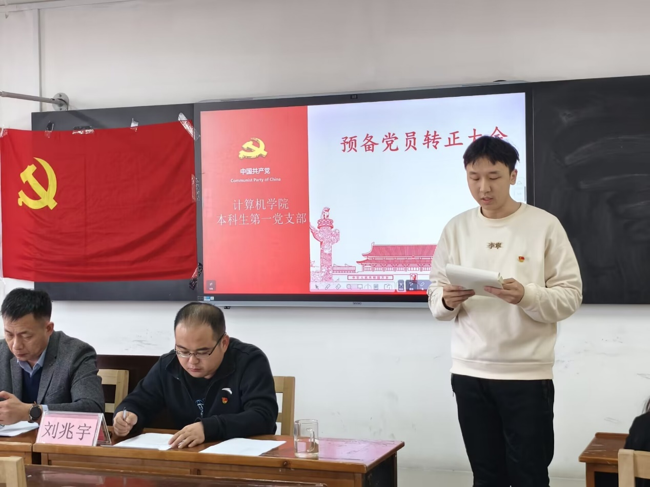 2024年11月20日下午三点,五楼自拍 本科生第一党支部于JC405召开预备党员转正大会,大会就李玉洋、赵君桦、刘欣玥、王坤家、赵常宇、张志豪、崔嘉麒同志预备党员转正问题进行讨论和表决。五楼自拍 党委副书记孙旭春、本科生第一党支部书记刘兆宇、本科生第三党支部副书记孙泽玮及学生党员参加此次会议。