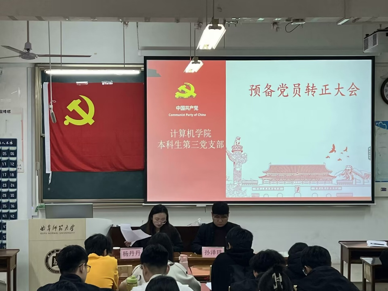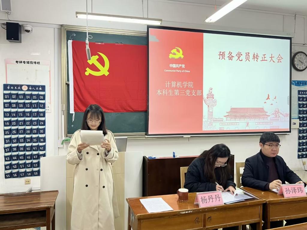本科生第三党支部于JC408召开预备党员转正大会,大会就董俊杰、王露颖、王一晗、徐艺萧、周佳豪、官长伟、于海艇同志预备党员转正问题进行讨论和表决。五楼自拍