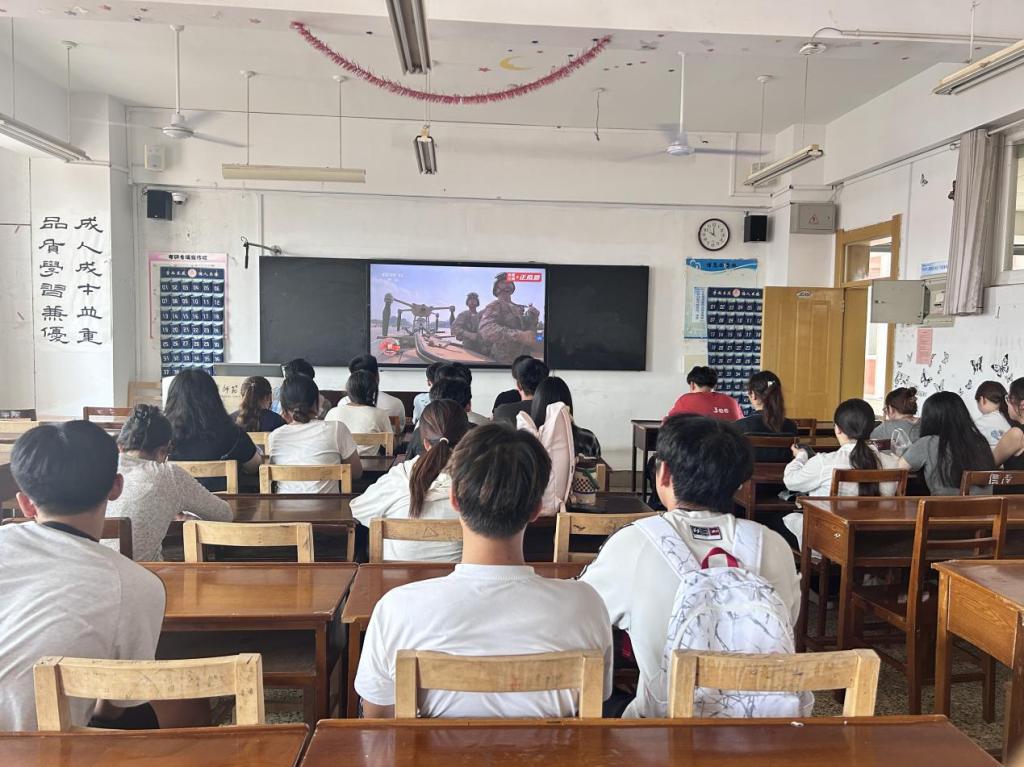 观看直播的过程中,师生们神情专注,认真聆听习近平总书记的重要讲话,热情赞扬人民解放军的雄伟军姿,热烈讨论接续亮相的现代化武器装备,骄傲自豪的爱国情怀洋溢在各个会场。