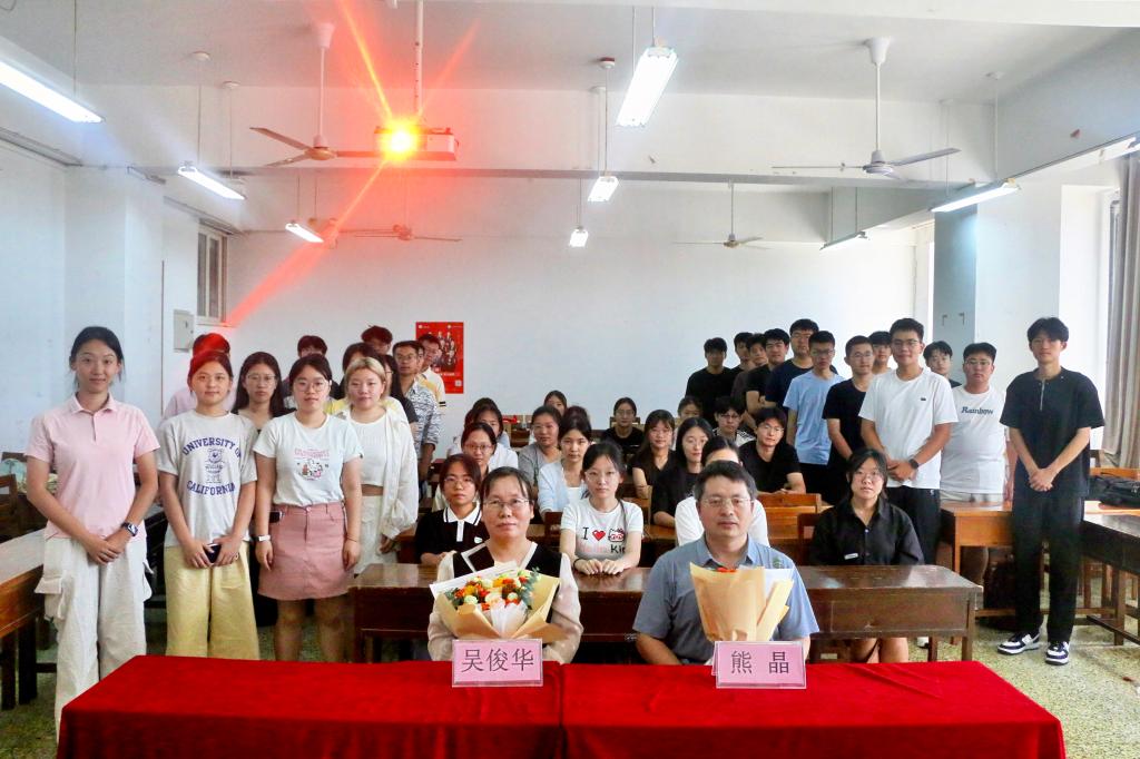 的熊晶教授和吴俊华教授分享育人经验,并与师范生进行面对面交流,师范生代表毛彤心主持。