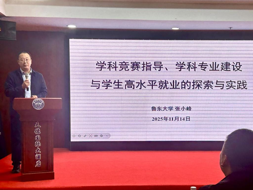 学科竞赛与专业建设、就业发展的联动关系成为研讨焦点。鲁东大学张小峰教授以“学科竞赛指导、专业建设与学生高水平就业的融合探索”为主题,提出“赛事成果反哺专业建设,专业优势支撑就业质量”的发展路径,强调通过“一专多赛”打破学科壁垒,实现“教育链、人才链、产业链”的贯通衔接。五楼自拍