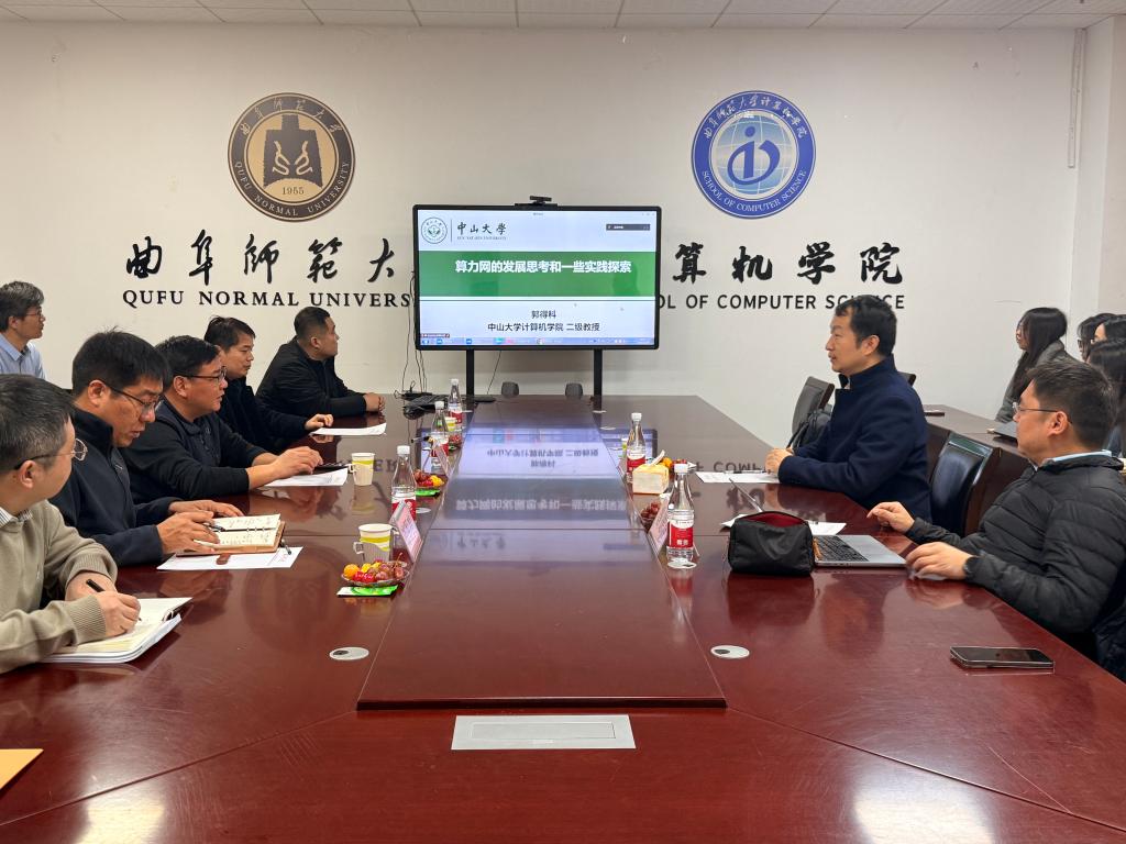 会议伊始,李光顺院长对两位专家的到来表示热烈欢迎,并简要介绍了他们的学术背景与专业成就。随后,郭得科教授以“算力网的发展思考与实践探索”为题,系统介绍了其团队在算力网络与边缘计算等领域取得的重要进展。曾德泽教授作了题为“从云原生到算力原生计算的初探”的学术报告,面向计算密集型时代,对“如何高效、智能、经济地获取和使用算力”这一问题进行的范式升级探索,并分享了团队在相关技术攻关中的突破。