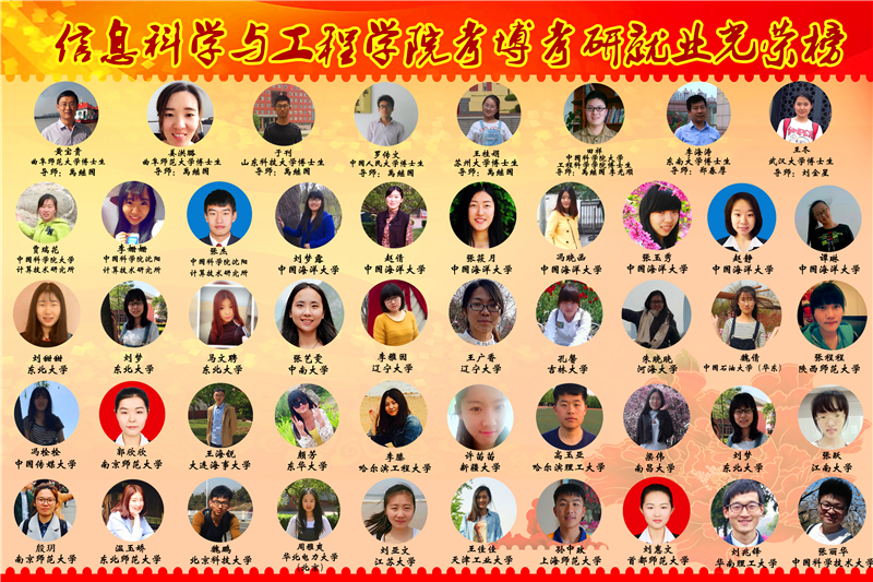 遵从“学而不厌,诲人不倦”的校训,我院本着注重提升学生个人综合素质的教学宗旨,培养出2016届优秀毕业生。在以往的基础上,我院今年考博考研就业的人数有所提升,其中,考取博士生8人,研究生79人,辽宁省气象信息中心1人,京东尚科信息技术有限公司1人,审计署驻济南特派办1人,临沂国税局1人,青岛国税局1人,烟台国税局1人,德州国税局1人。