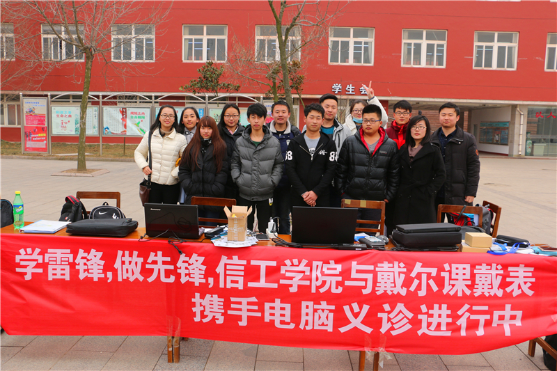 为迎合雷锋月发扬雷锋精神的号召,更好的发挥专业特长服务大众。2016年3月5日下午2:30,信息科学与工程学院社会实践部、网络部和戴尔课戴表携手在五楼自拍
