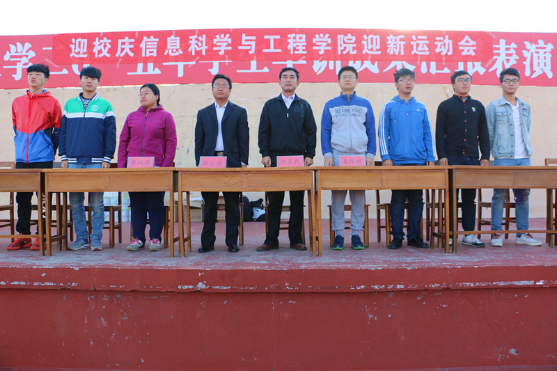 信息科学与工程学院迎新运动会于学校西操场盛大开幕,出席本次运动会的有信息科学与工程党总支副书记颜景民、团总支书记毕文波、辅导员姜振栋老师和鲁瑞丽老师。