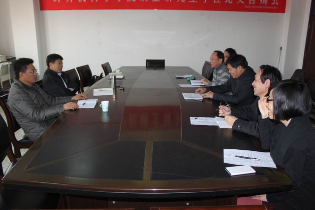 2013年12月19日下午,学校党委副书记刘新生、党委组织部部长马恩、副部长王明科一行莅临我院检查指导工作。我院党总支书记张书东、党总支副书记颜景民、副院长高仲合、教工党支部书记赵景秀、研究生党支部书记夏小娜等老师参加了座谈会。