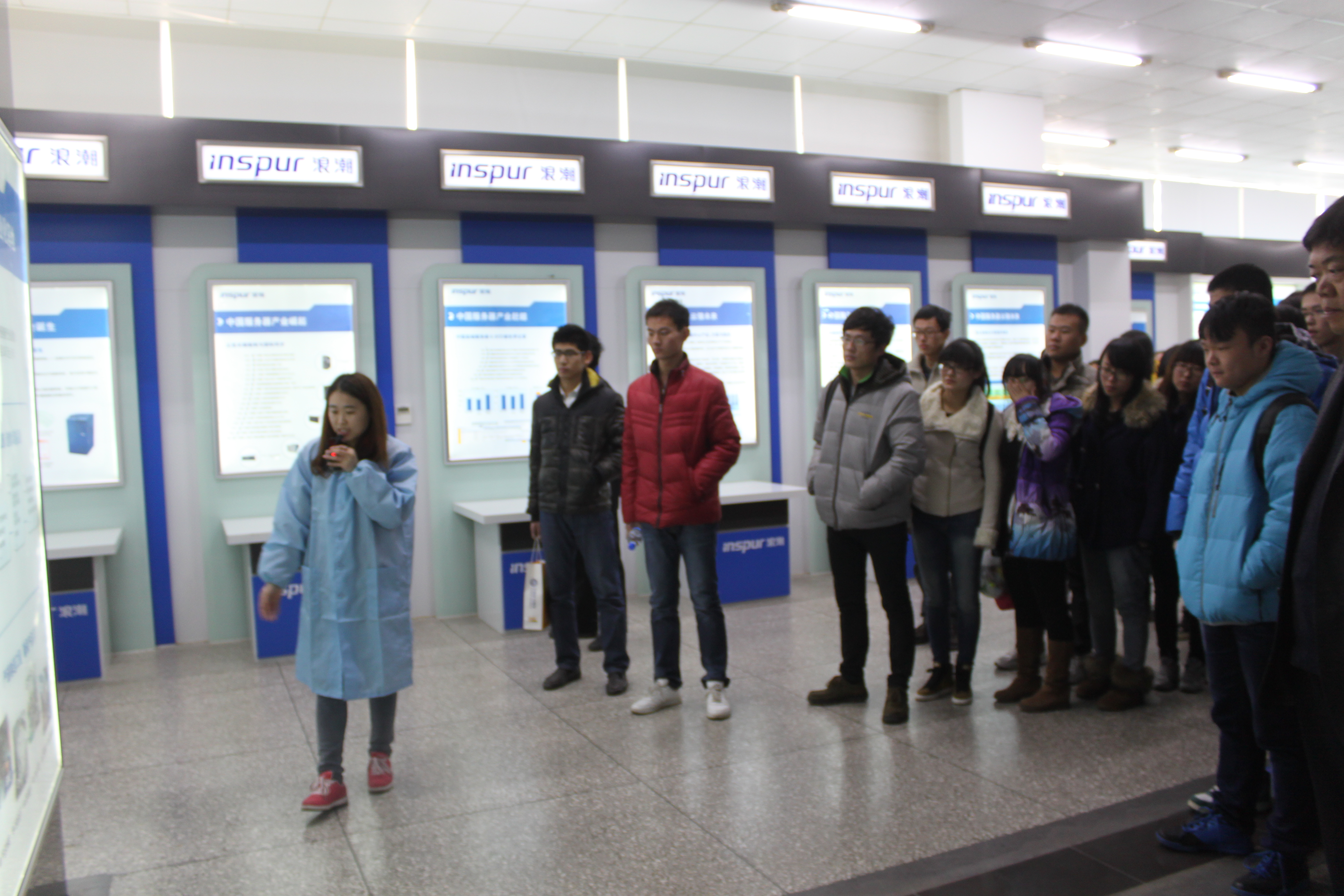 在浪潮科技园展厅,师生们领略了浪潮集团的五楼自拍,亲身体验了浪潮集团最新最前沿的科技产品。陈亮博士在浪潮集团培训室针对大数据和云计算等技术进行了简短的技术讲座,他希望广大同学“针对企业对计算机专业人才的需求,不断提高自己的专业技能,不仅为日后更好的就业打下坚实的基础而且能够为科技发展贡献一份力量”。