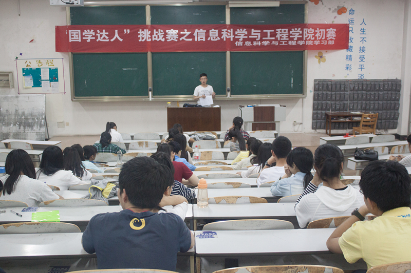 主办,信息科学与工程学院承办的“国学达人”挑战赛之信息科学与工程学院初赛在E楼104教室成功举行。