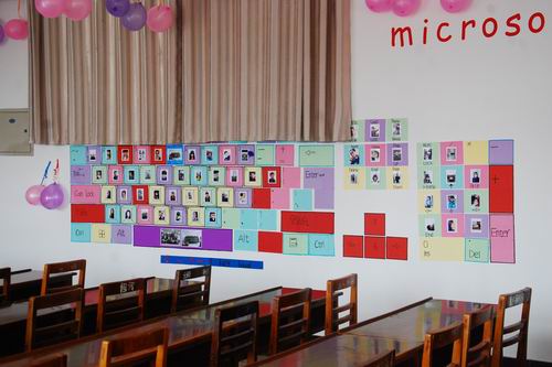 此活动由14级同学对本班教室进行了精心的布置和装扮,有的教室的照片墙上记录了14级同学们进入大学以来的点点滴滴,有认识新朋友的快乐也有学习时的认真。每间教室不同的主题装扮有的清新高雅,有的时尚大方,有的专业特色鲜明,都代表了每个班级不同的学习氛围和班级特色。不同颜色的纸板拼凑成电脑的键盘,每个按键上有同学的照片,教室后面有用彩色纸条装扮成的电脑显示器;新颖的装扮给人耳目一新的感觉。同学们的才思和创意也充分体现出了当代大学生的审美情趣。
