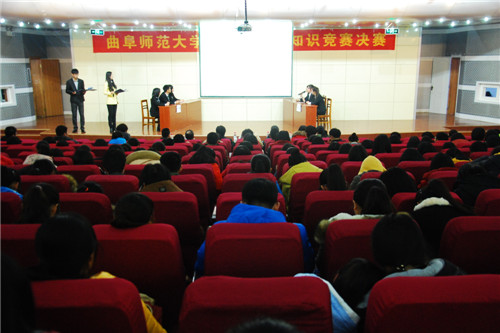 经过初赛、选拔赛和复赛的激烈角逐,最终信息科学与工程学院、地理与旅游学院、工学院等六支代表队伍脱颖而出,争霸决赛。本次大赛共设有单选题、多选题、案例分析题三个环节。单选与多选环节我院参赛选手作为第二组比赛选手登场,较好的完成了题目的答辩。在最后的案例分析题中,我院选手沉着应对,将案例中包含的知识要点,法律法规逐一列出,一名同学回答中心要点,其余两名同学轮番进行了详细的补充,最后答案公布,回答与答案吻合接近,赢得了场下观众的阵阵掌声。最终得分由三个环节相加所得,信息科学与工程学院以122.3比135.7分遗憾落败。