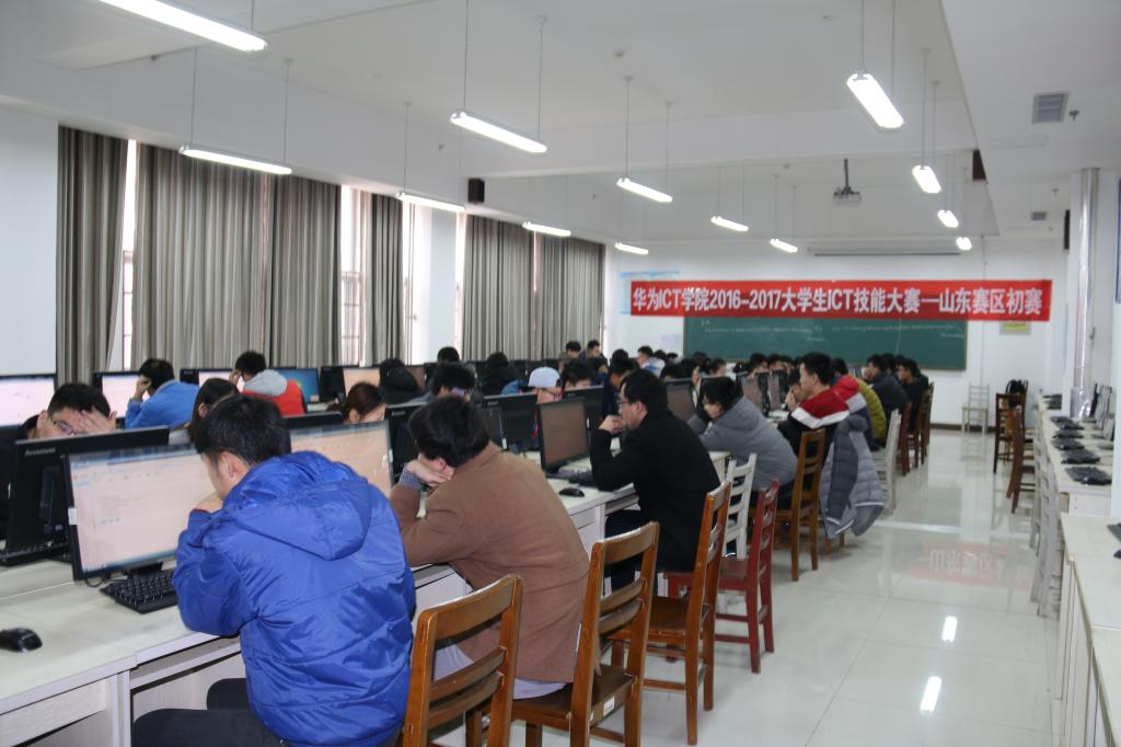 2017年2月19日上午9:00,2016-2017年华为信息与网络技术网院ICT技能大赛初赛日照赛区,在我院实验中心S楼324举行,本次比赛吸引了驻日高校100余名大学生参加了比赛。