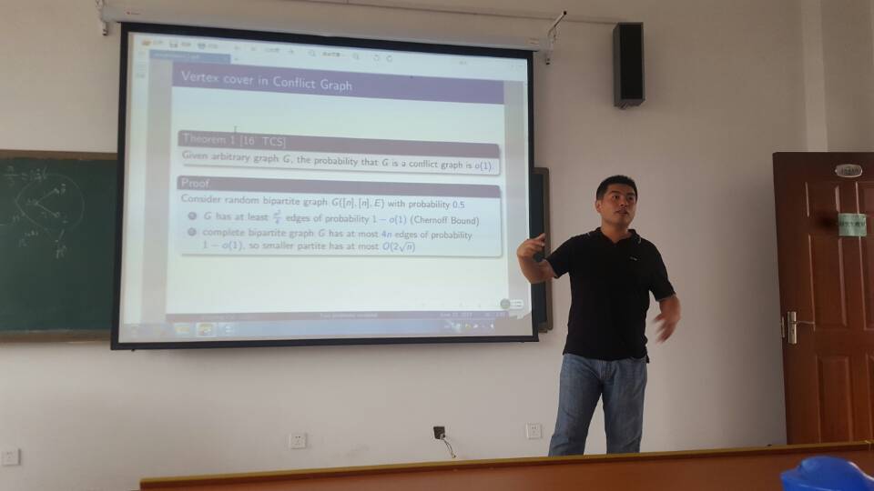 佐治亚州立大学蔡志鹏老师应信息科学与工程学院的邀请,于7月6日下午15:30在日照校区JS410做了题为“Refined complexity analysis of two fundamental problems in data quality”的学术报告。本场的报告会由信息科学与工程学院赵景秀教授主持,学院的部分研究生参与了本次学术报告会。