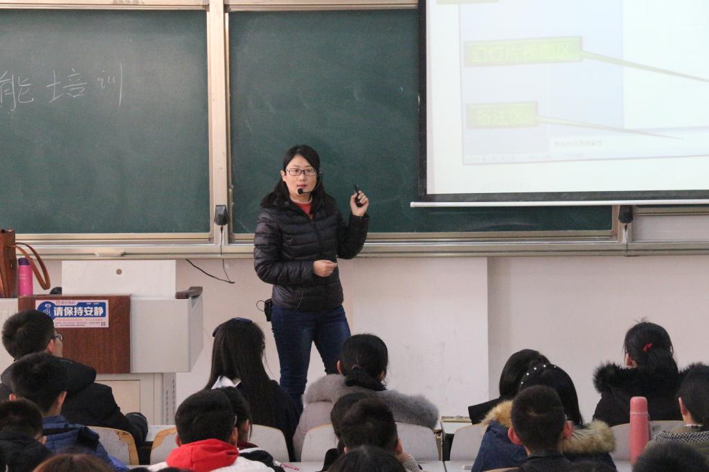 为了加强我院师范类学生特别是免费师范生生从师技能培养,我院于12月10日下午2点30分,邀请了朱荣老师对师范类专业的学生在E303进行PPT技能课程培训。