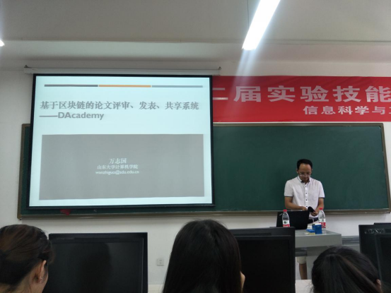 万志国教授应邀为信息科学与工程学院的学生做了题为“基于区块链的论文评审、发表、共享系统——DAcademy”的学术报告。报告在JS417举行,由信息科学与工程学院副院长李光顺老师主持。部分学院老师和研究生参加了学术报告会。