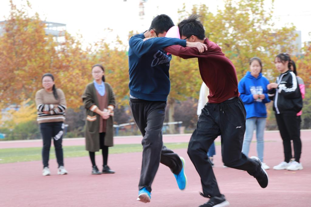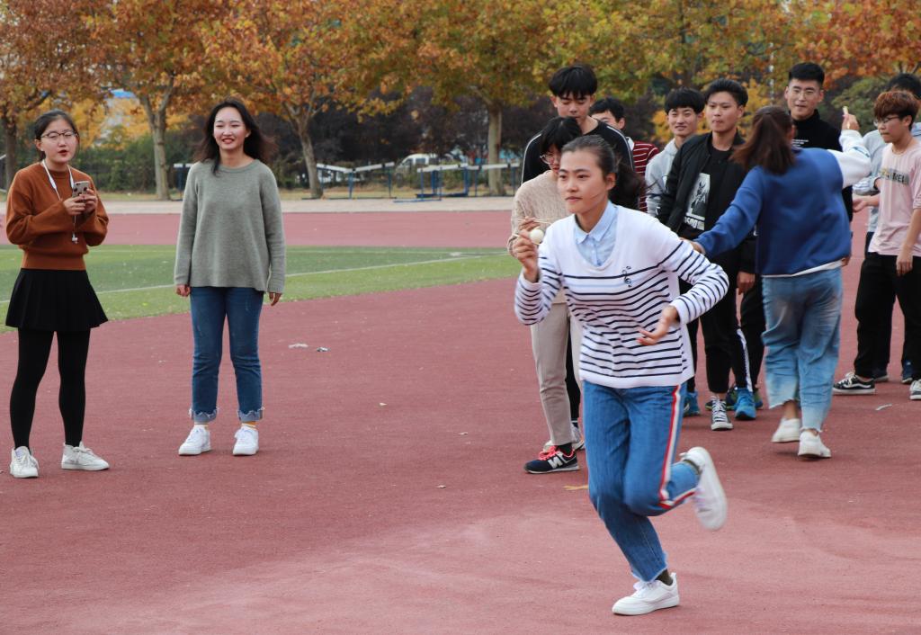 心理健康指导中心承办,面向2018级全体学生,允许各院系之间自由联谊的新兴趣味运动会。此次我院继续与工院联谊举办,共分为纸衣往返跑、三人四足、木筷运球、陆地纸上飘、顶球竞走五个项目。同学们在赛前积极报名,认真准备各个项目。在"纸衣往返跑"比赛中,我院队员配合默契,以最快的速度奔向终点进行接力,取得胜利。比赛过程中我院每个运动员都拼劲全力,努力为自己和学院争光。最终经过一系列趣味性与挑战性十足的比赛后,本次运动会在一片欢快的气氛中圆满结束。