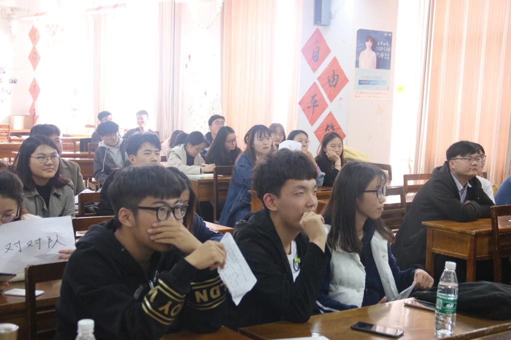 活动伊始,主持人金方程介绍了活动规则并希望大家能在本次活动中有所收获。活动共有13支队伍参赛,参赛的同学们跃跃欲试,热情高涨,准备进入正式的活动环节。本次活动分为知识竞赛和模拟“招生官”两个环节,第一个环节分为问答比赛和抢答比赛两个回合,参赛选手轮流从题库中随机抽取题目作答,竞赛为积分制,基础分0分,答对加10分,答错扣10分,限时30秒仍未答出者扣10分,两个回合分数累积为第一环节总分。第二个环节采用团队制,参赛团队从所给项目中选择一个进行介绍并回答由其他参赛队伍随机提问的问题,裁判根据团队项目介绍及应答情况进行打分。最后,我儿小程队、叫啥都行队和我们孙小金队获得了本次活动的一等奖。