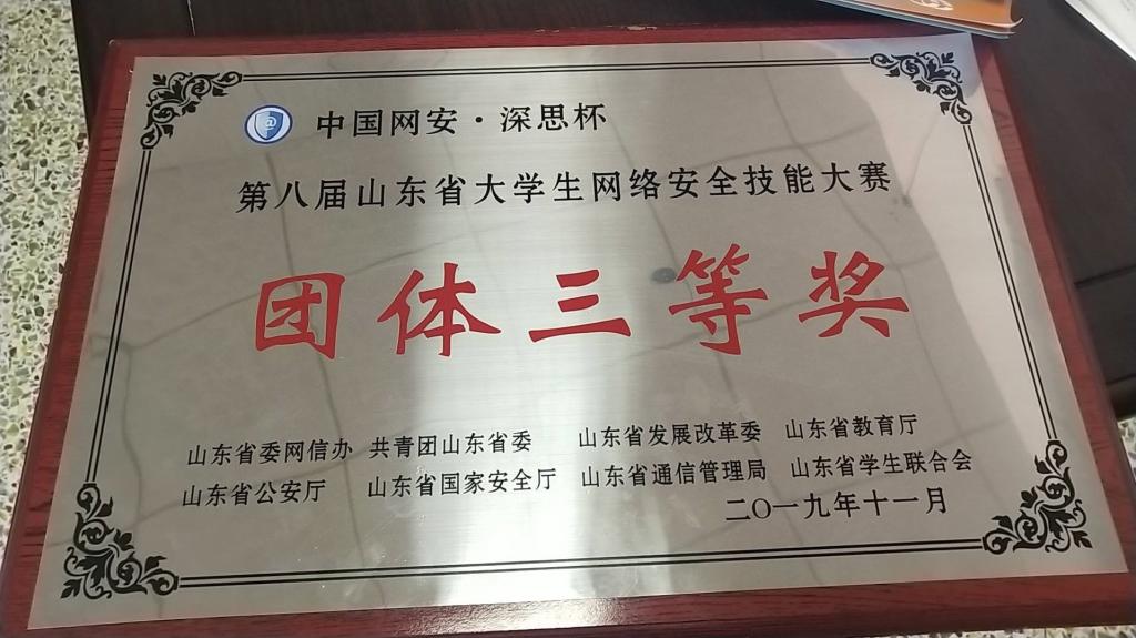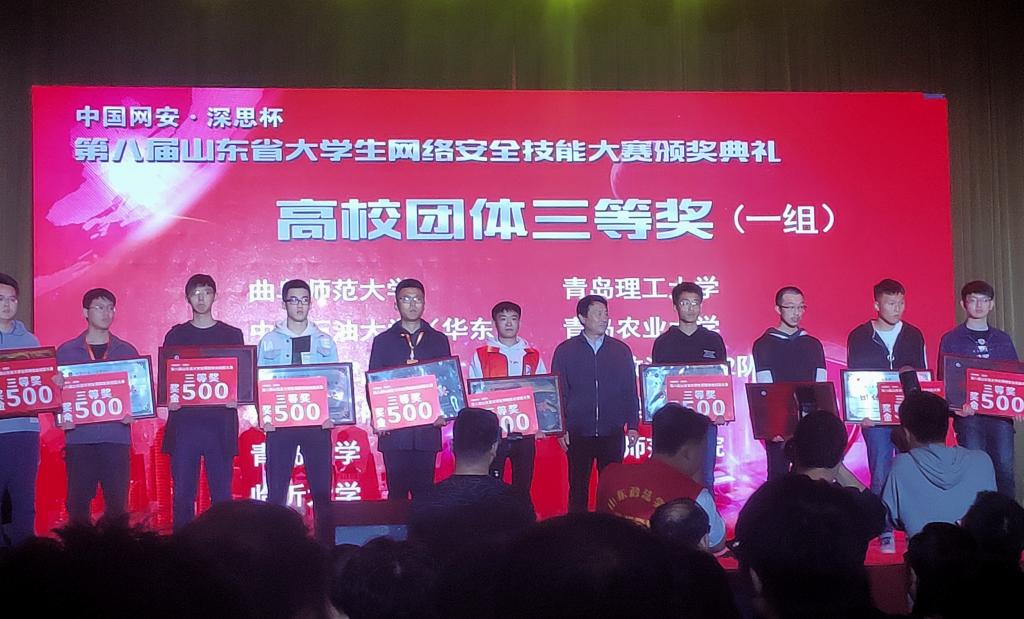 近日,在第八届山东省大学生网络安全技能大赛中,我校信息科学与工程学院学生黄富能、张超、于泽航组成的代表队获得团体三等奖。