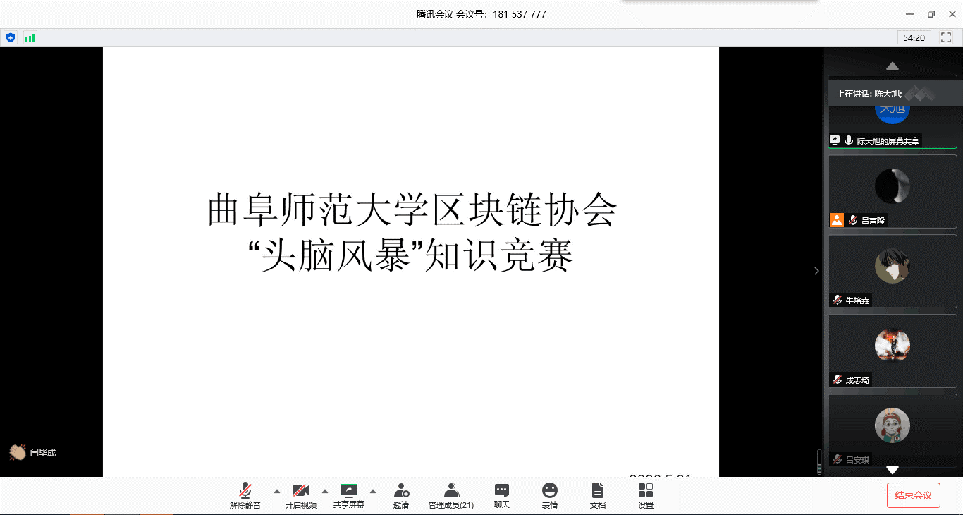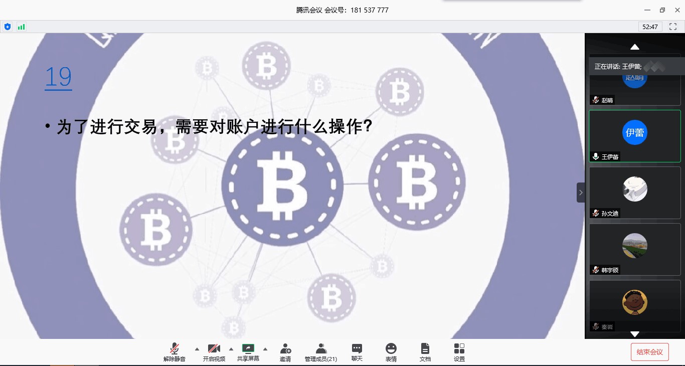 区块链协会顺利举办首届"区块链知识头脑风暴比赛”。本次比赛采用线上会议(即腾讯会议)的方式进行,信息科学与工程学院协会指导老师王伊蕾副教授、协会指导老师李涛副教授以及协会主要成员出席并担任评委,广大学生踊跃报名,积极参加。