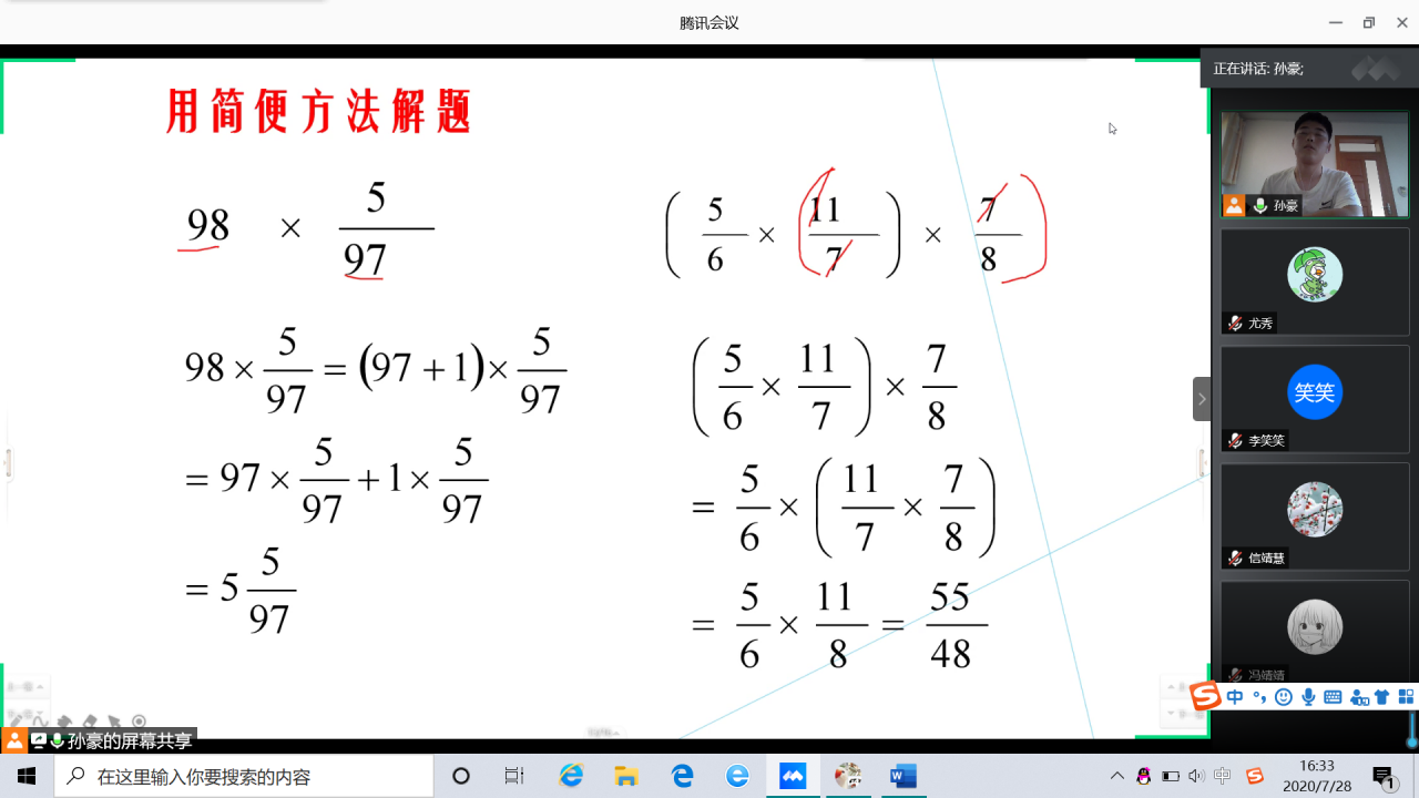 7月28日,“先生计划”教育关爱服务团顺利开展第二天线上教学活动,其教学内容主要为在文化课上为五六年级的同学查缺补漏,在特色课上深入挖掘同学们的兴趣。
