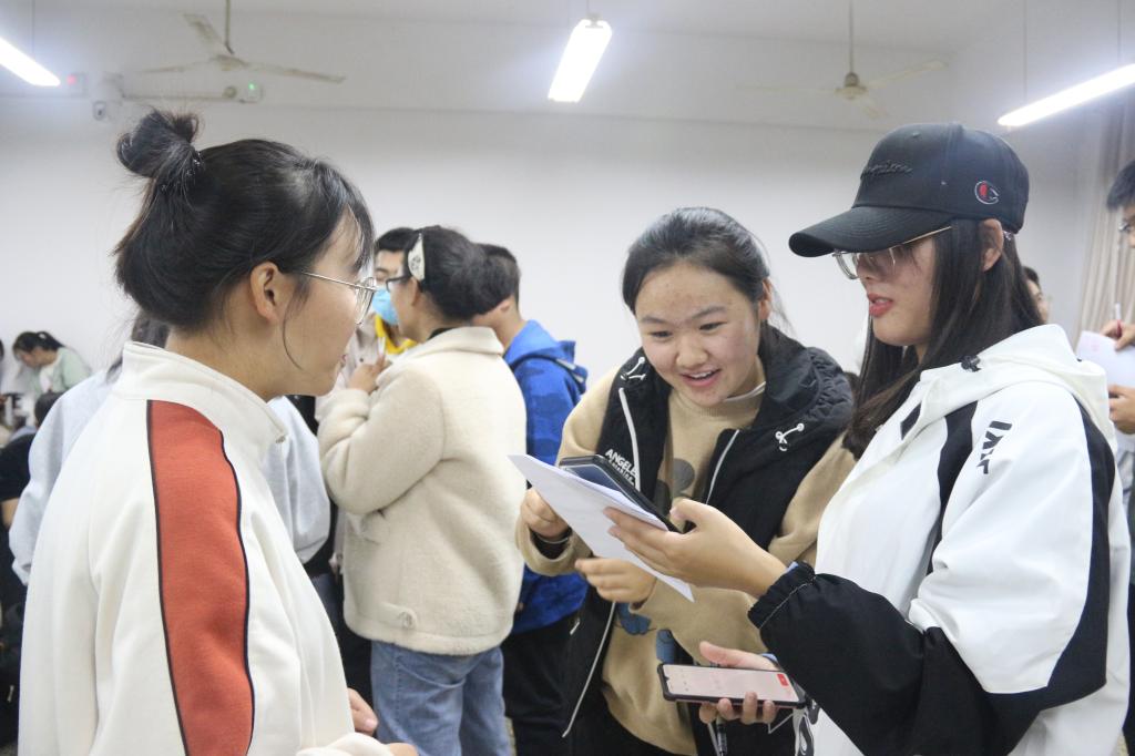 本次比赛分为你画我猜、听口令练反应、成语接龙、人人抱团、贴鼻子五个项目。在“你画我猜"项目中,参与者两两合作,在心理健康服务部成员的记录监督下,比赛有序进行,一人做动作,一人猜词语,最终三分钟内猜出数量最多的小组获胜;随后开展的“听口令练反应”、“成语接龙"项目展现了选手们敏捷的动作,丰富的词汇量;接下来的“人人抱团"项目使活动达到高潮,同学们在主持人喊出数字后与临近的同伴抱成一团,场上气氛热烈,活动如火如荼地进行;最后,大赛在“贴鼻子”项目顺利结束后落下帷幕。在此次活动中,参赛者分工明确,团结协作,展现了积极向上的精神风采。