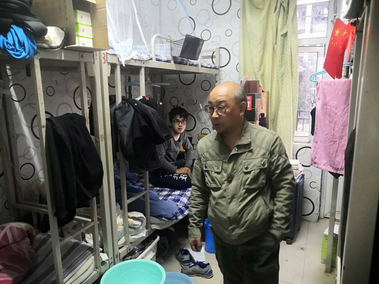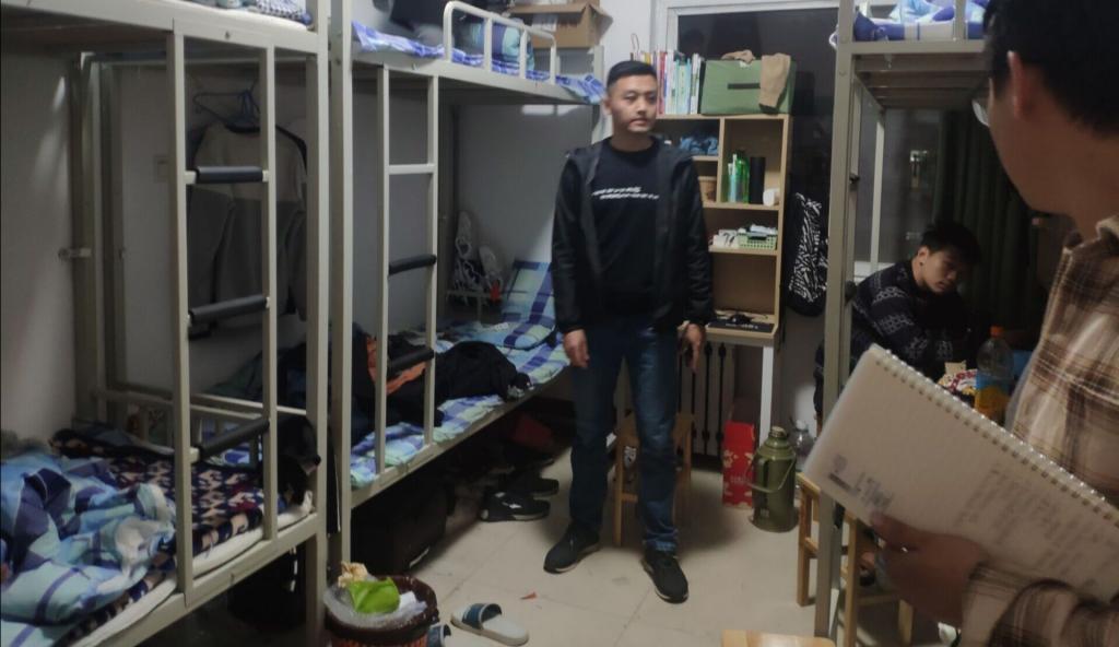 开展宿舍检查工作。党委副书记肖龙航、2017级辅导员孙宇、2018级辅导员纪玉超带领主席团、纪检部、宿管部和安全部部长分别前往东升园和文泽园对五楼自拍