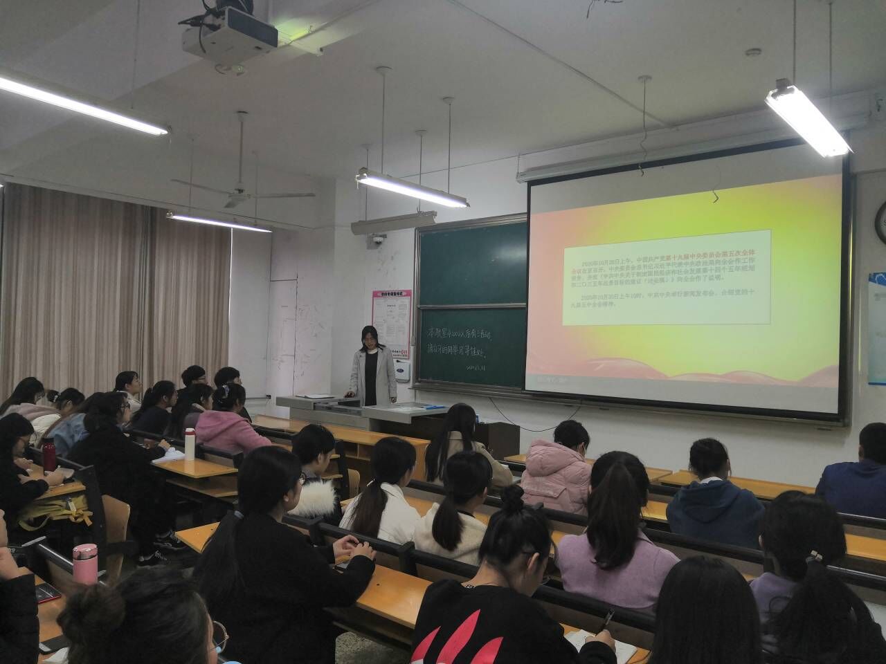 在C401对入党积极分子展开“党的十九届五中全会—满怀信心向未来”主题教育会议。本科生党支部书记于运清出席会议进行主讲,全体入党积极分子成员参加会议。