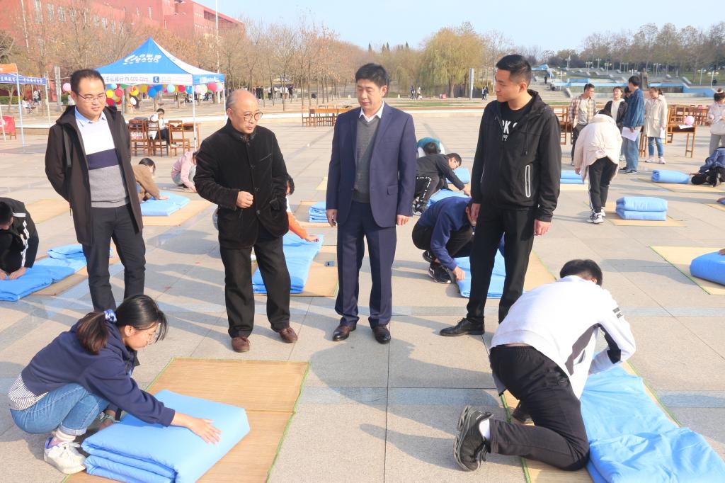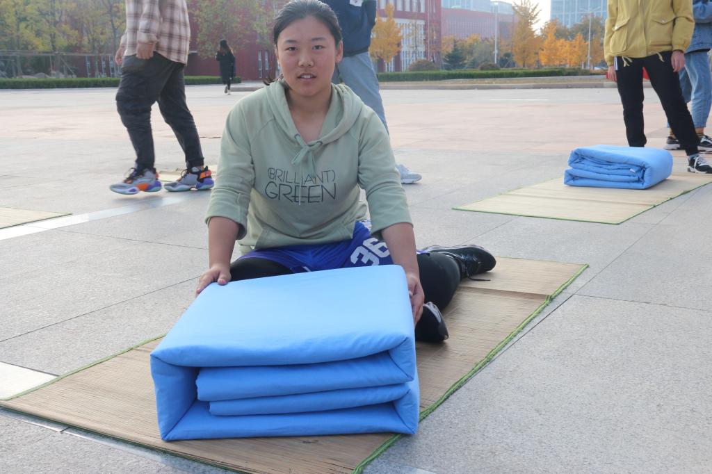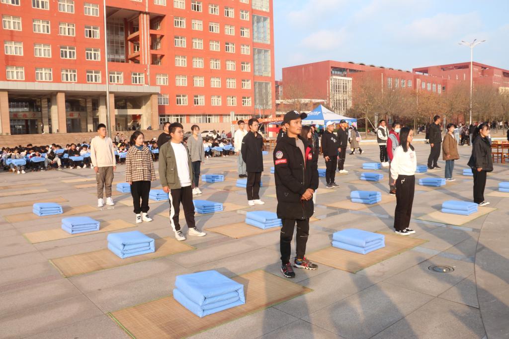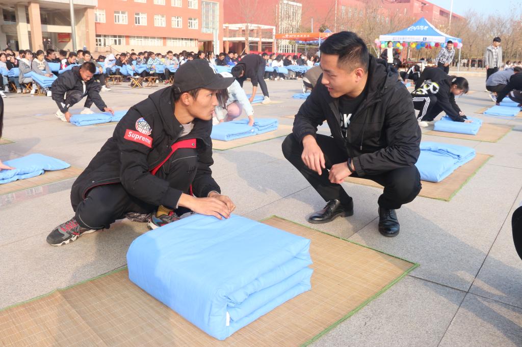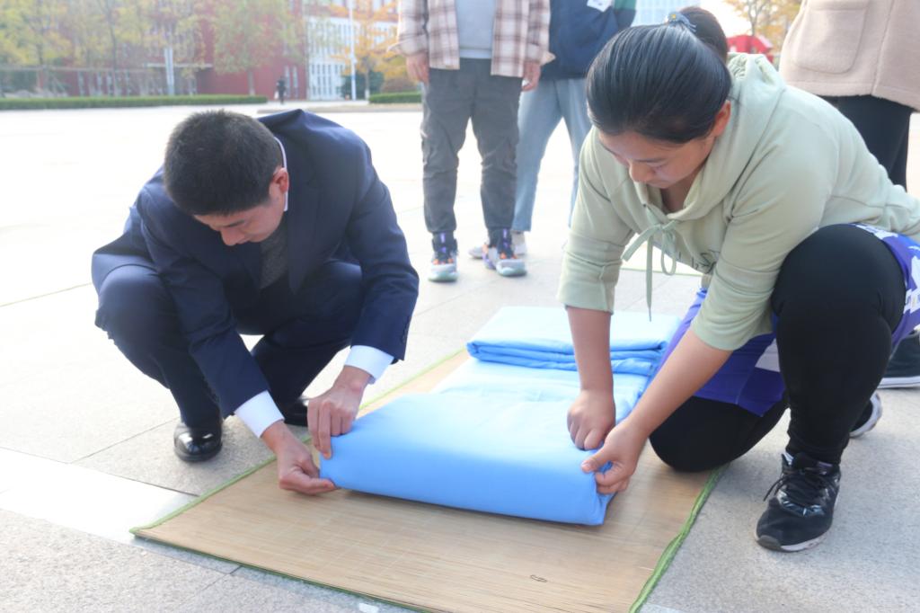 于日月广场成功举办叠被子大赛。学工处副处长、武装部副部长赵秀臣、五楼自拍