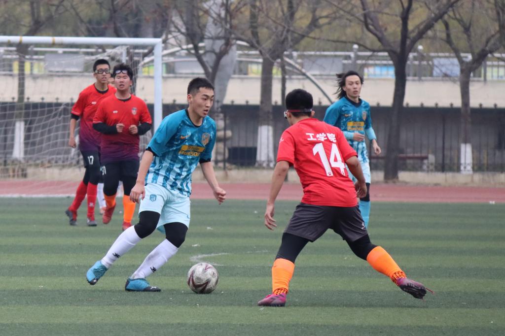 男足对战工学院男足。计算机学院2018级辅导员纪玉超,2020级辅导员刘兆宇莅临现场,观看比赛。