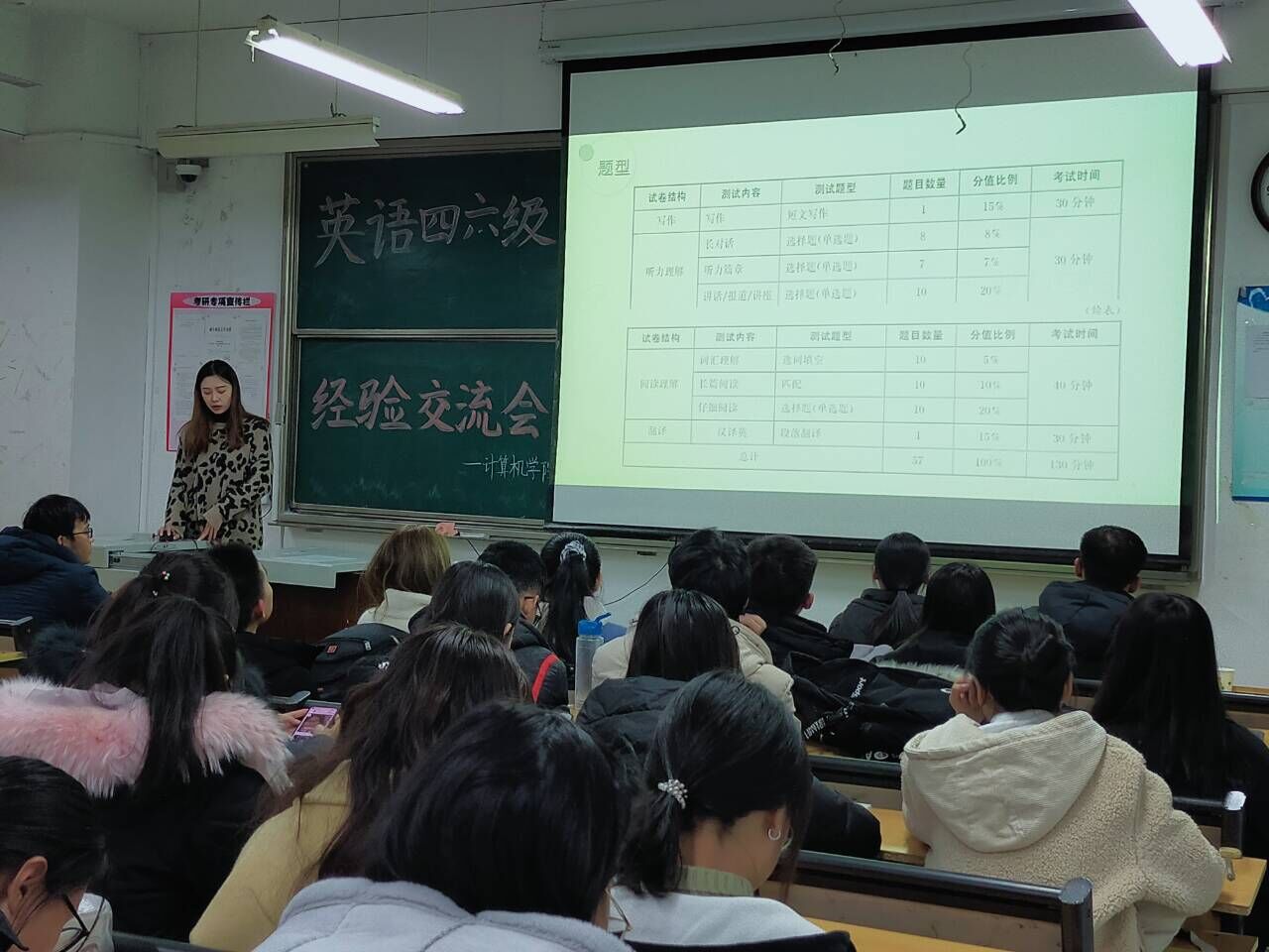 于JC401召开英语四六级经验交流会。本次会议由五楼自拍