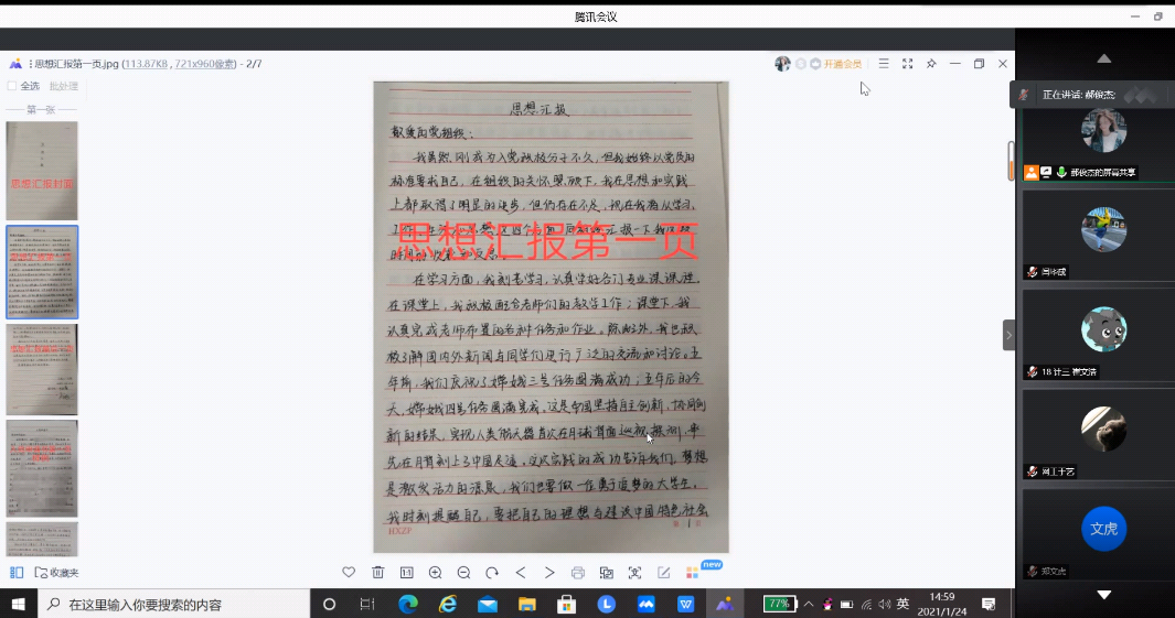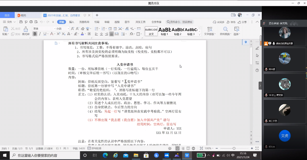 分党校于1月24日下午三点在腾讯会议举行关于假期期间发展对象部分入党材料的准备工作会议。会议中,五楼自拍
