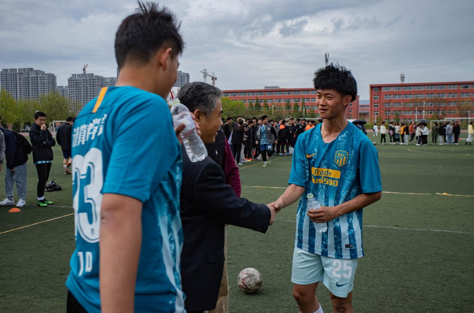 随着裁判的一声哨响,比赛开始,上半场两分半,我院李骏达发边线球,赢得开门红,上半场以1比0结束。下半场十分半,教职工从边路插上一脚破门,守门员马俊潇来不及反应,双方1比1平。十二分半,我院获得任意球机会,李骏达再次射门,比分来到2比1。十五分钟,教职工队近距离任意球,连续两次打中李骏达,造成手球,判点球成功罚进,双方2比2平。下半场伤停补时,双方未能取得进球,进入点球大战。在点球大战中,我院李骏达、丛正、孟繁龙破门成功,而守门员马俊潇成功扑出对方三记点球,我院成功取得胜利,获得冠军。比赛结束后,紧接着进行五楼自拍