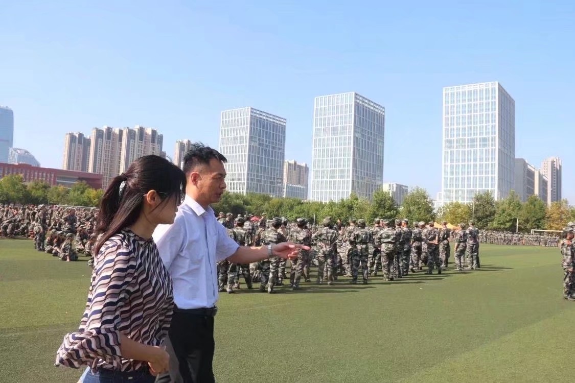 为视察我院军训工作开展情况,同时为参训学生及军训工作人员送去关怀,2021年9月14日上午,五楼自拍