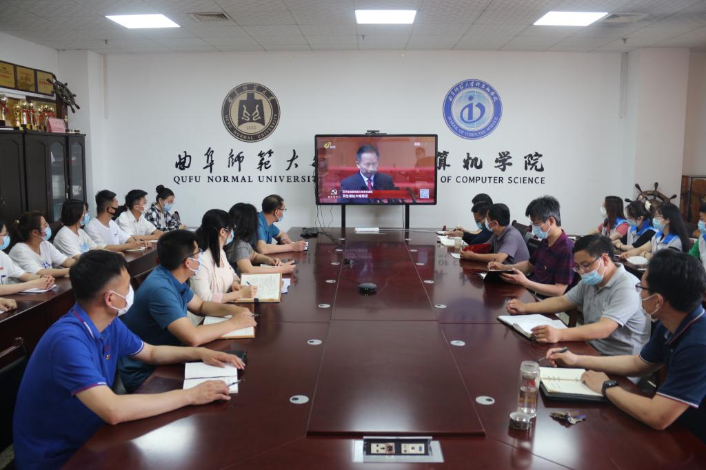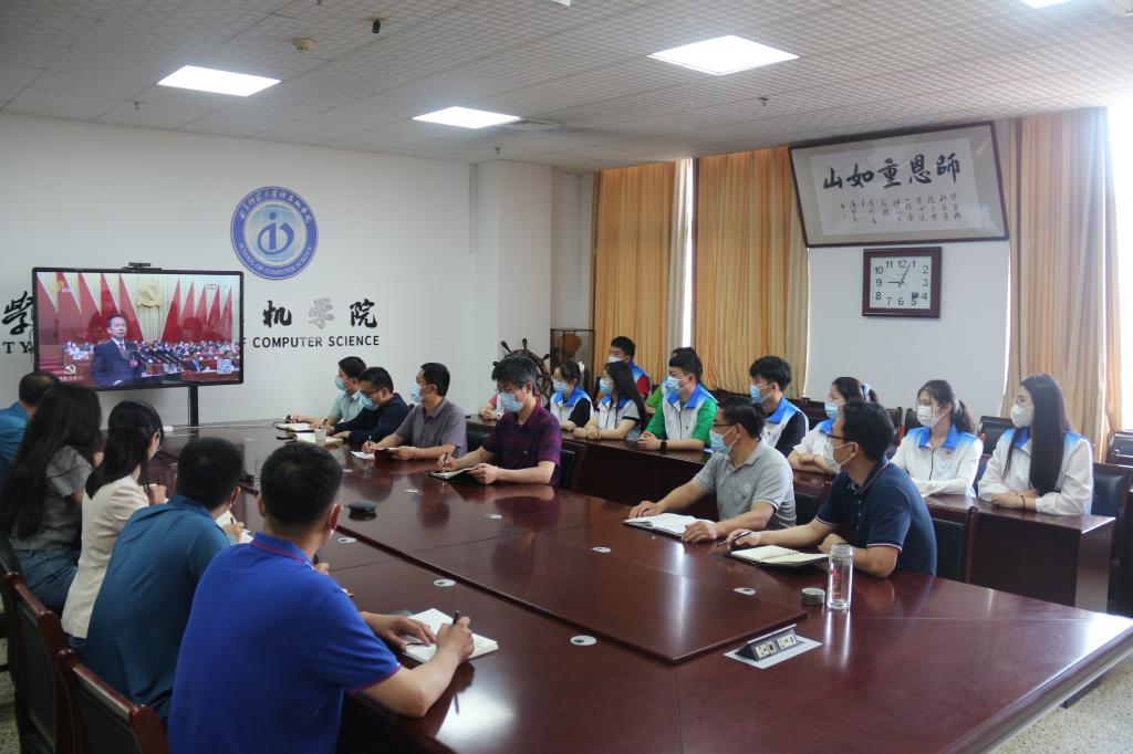 党委书记于健、院长李光顺、学院党委副书记孙旭春、副院长刘效武、副院长尚军亮、各系主任、各党支部代表集中收看了党代会开幕式实况直播。
