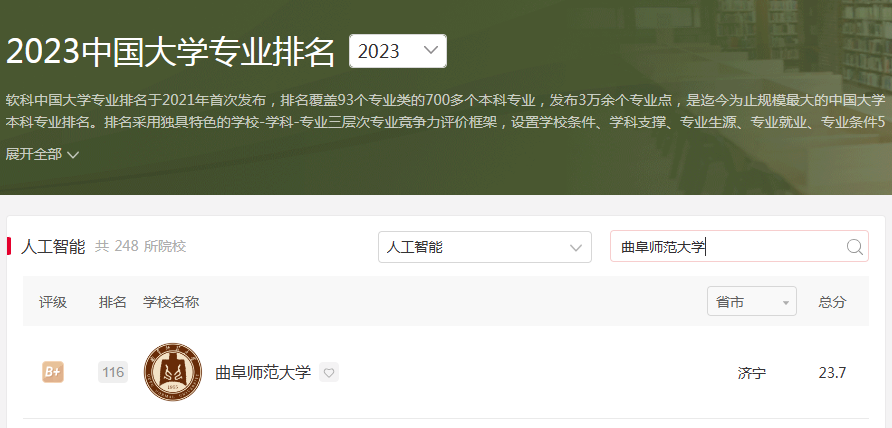 4大专业上榜,评级A专业为网络工程,评级B+专业数为:计算机科学与技术、人工智能、数据科学与大数据技术。