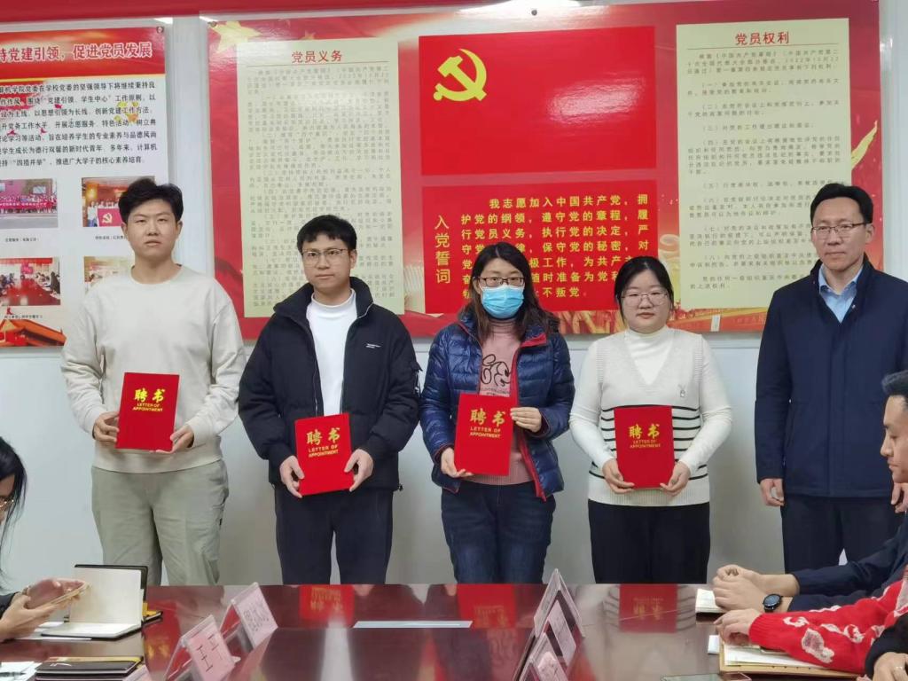 于2023年12月6日举办学生工作领导小组大会暨班主任聘任仪式。学院党委书记于健、副书记孙旭春、副院长尚军亮出席会议,各班班主任、辅导员、学生代表参加。