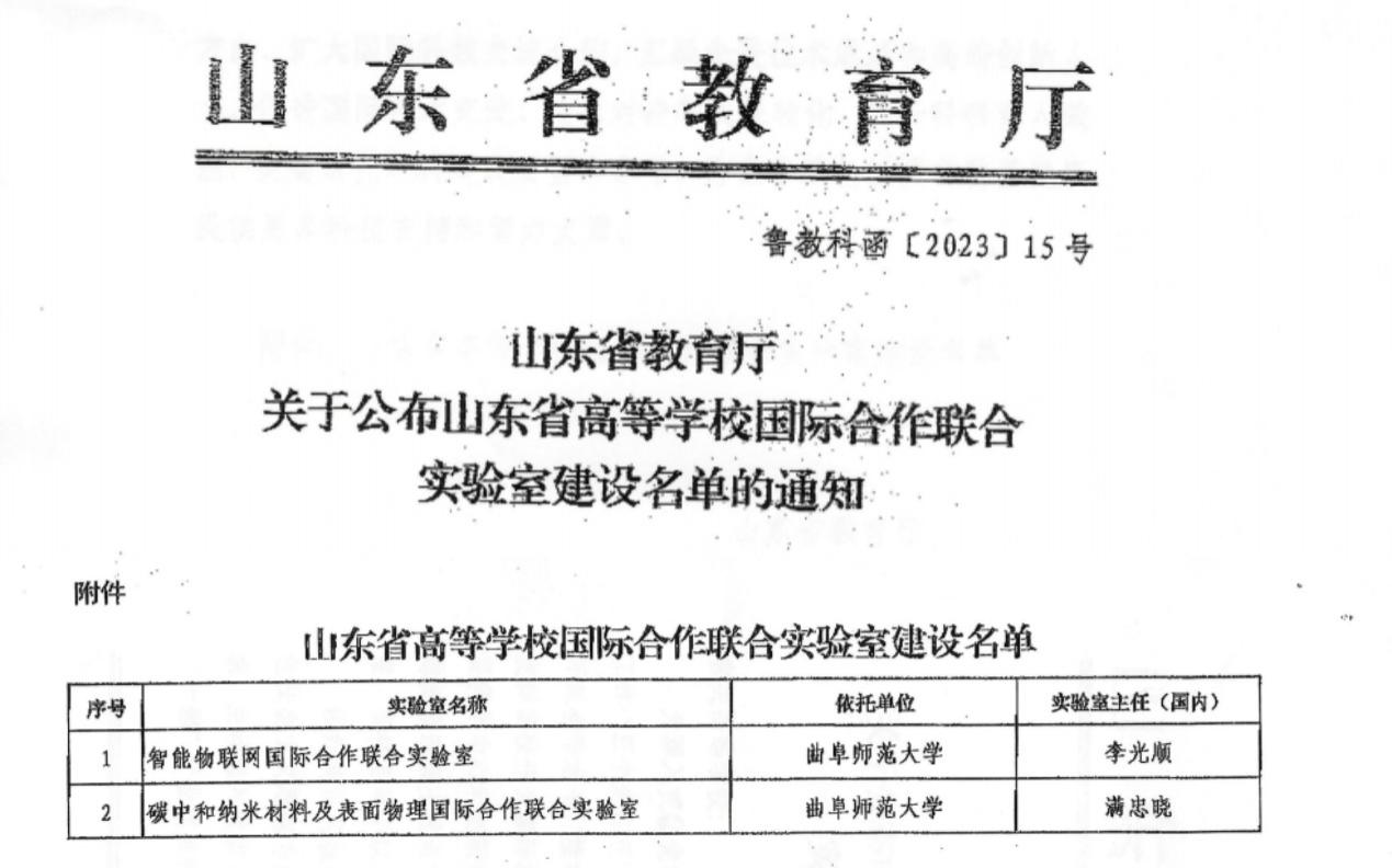 学院高度重视科研平台培育建设工作,提升平台凝聚能力和交叉融合水平,深入推动有组织科研建设,构建以创新需求为导向、以学科融合为抓手的科研平台组织范式。2023年,新获批山东省物联网信息技术工程研究中心和山东省智能物联网高等学校国际合作联合实验室,学院现有科研平台数量达到7个。其中,山东省物联网信息技术工程研究中心于2019年由山东省发展和改革委员会批准成立,2023年优化整合为山东省物联网信息技术工程研究中心,山东省智能物联网国际合作联合实验室由山东省教育厅批准成立。