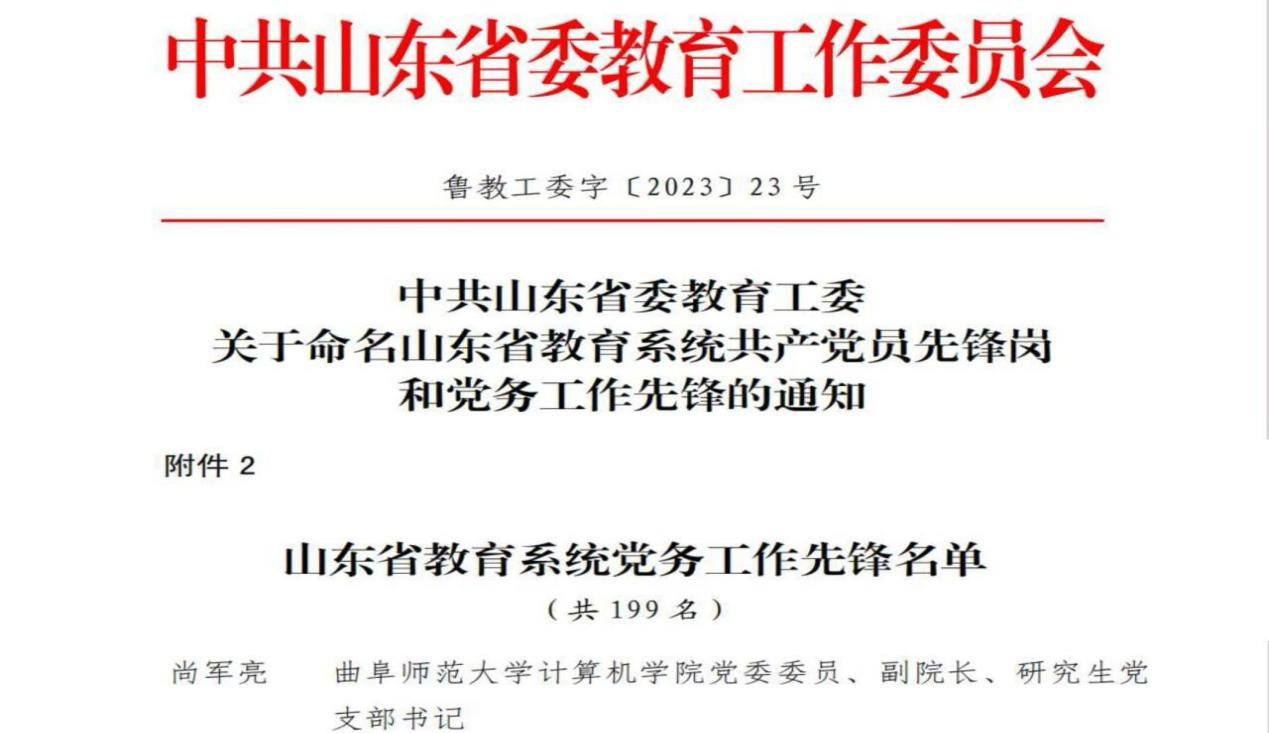 2023年12月29日,山东省教育厅公示2023年度山东省本科教学改革研究项目,李光顺教授主持的《基于OBE的计算机专业产教融合卓越人才培养模式创新与实践》山东省教改重点项目获批立项。我院同时获批校级思政示范学院建设项目1项、作为重要成员参与山东省普通本科高校重点领域教学改革试点项目(山东省“111”计划)1项。