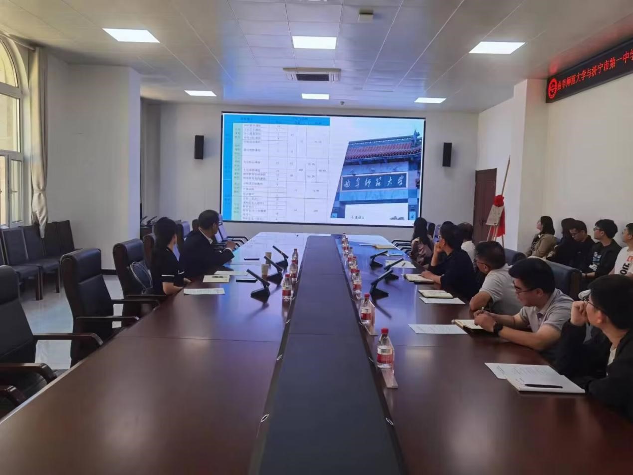 在济宁市第一中学任城校区召开培养方案论证会,党委书记张明洁、副院长刘效武以及2021级师范生辅导员孙泽玮出席会议,济宁一中任城校区副校长王子峰主持。