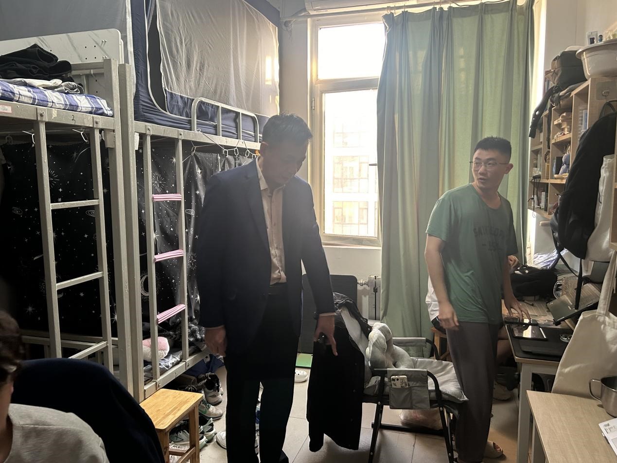 党委副书记孙旭春带领全体辅导员深入学生宿舍,开展了一场“拉网式”宿舍安全检查。检查内容涵盖了宿舍内违规电器的排查、有无线路老化和乱拉乱扯电线的情况、床铺稳固性、门窗安全以及个人卫生等多个方面。孙旭春提醒同学们要强化安全意识,培养良好习惯,遇到问题及时与辅导员沟通,共同维护宿舍的安全与和谐。