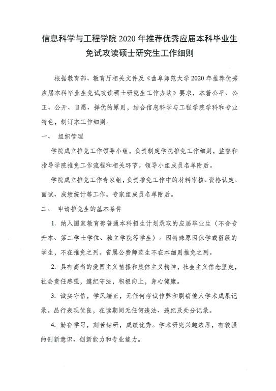 上一条: 信息科学与工程学院2020年“农村学校教育硕士师资培养计划”推荐免试攻读硕士研究生工作细则