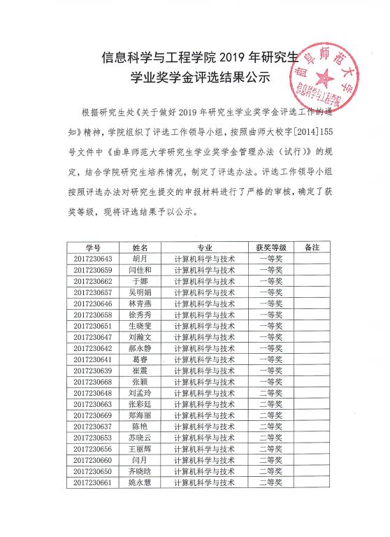 上一条: 信息科学与工程学院优秀研究生名单公示