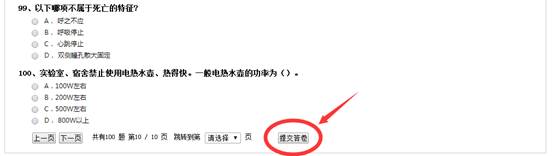 6、点击“在线练习”版块进行自我测试,当次测试结束后点击“提交答卷”, 系统显示测试成绩,随即可查看答卷正误详情或返回考试五楼自拍进行其他类别测试,测试次数不记入考试次数