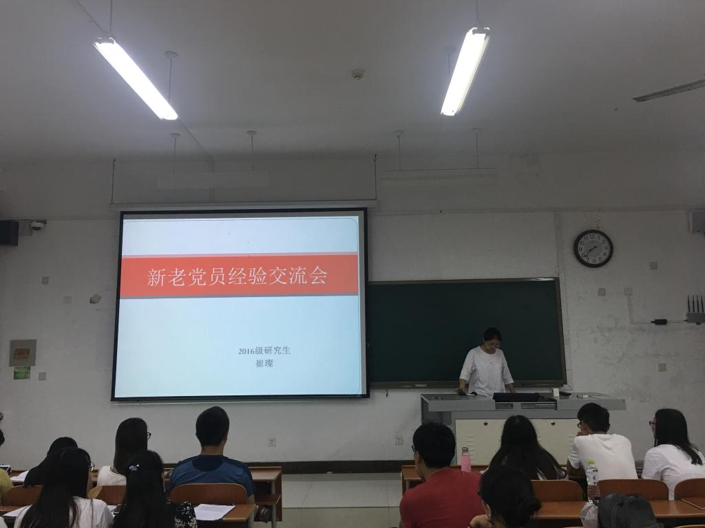 随后,15、16级党员同志逐一分享在研究生期间的心得体会,他们主要从以下几个方面进行讲述:1.作为一名党员,如何保持先进性。2.发挥党员的先锋模范作用,带头参加学院各项活动。3.培养良好的自制力,约束自我,提高自我,完善自我。17级新生党员认真听取他们的分享,并依次进行自我介绍,作出表态发言。他们纷纷表示要严格按照中共党员的标准规范自己,加强政治理论学习,认真搞好学习和科研,积极参加学院组织的各项活动,在研究生群体中起到带头模范作用。