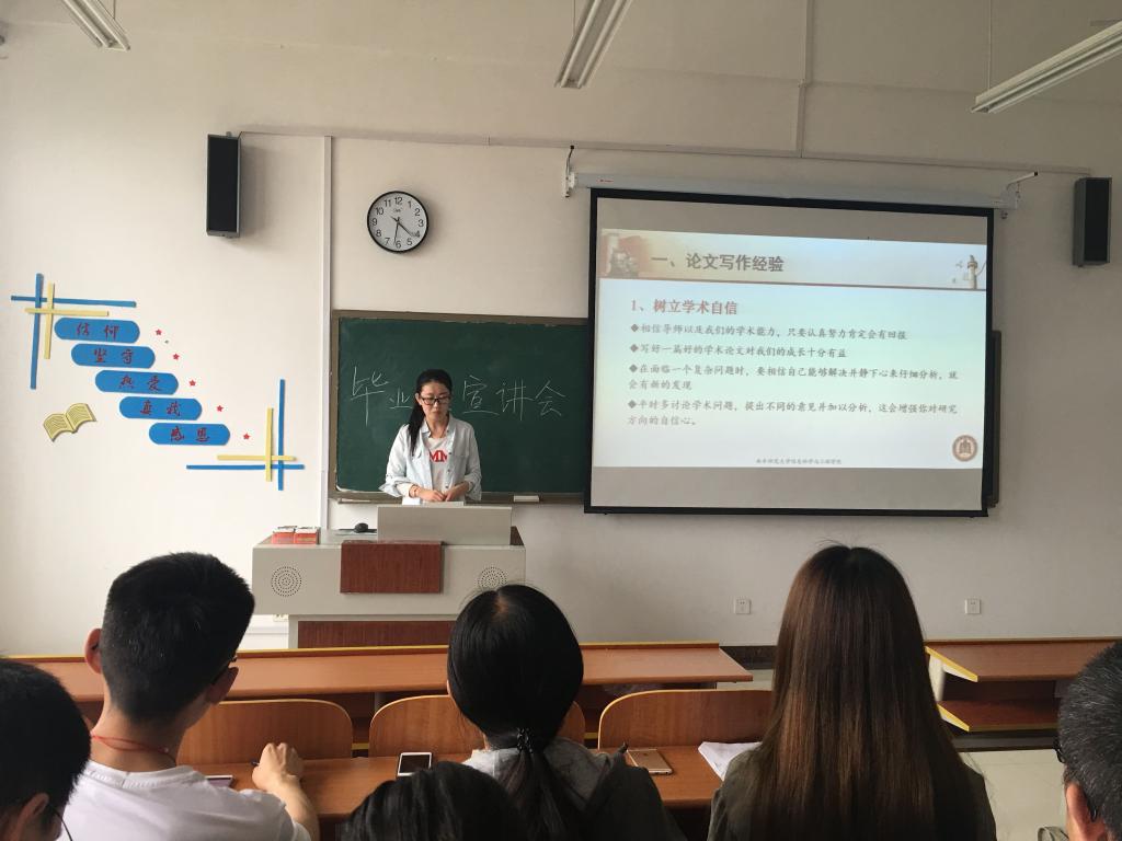 首先孙晓敏同志从论文写作经验、工作应聘经验、以及考博建议三方面与大家进行交流,在第一方面论文写作经验方面,她主要提到以下三点:1、树立学术自信。2、先看再写,多看再写。3、论文写作过程:1)阅读大量五楼自拍相关的文章是基础;2)针对阅读过程中遇到的问题找到新的突破点(比如算法的设计以及性能的分析),寻找相关的资料看是否可以优化原来的算法;3)大体设计算法模拟解决过程,然后再从理论上丰富设计的算法,通过仿真检验是否提高算法性能;4)整理相关内容(理论+实验结果),撰写文章;5)进行中文论文到英文的翻译以及语法等表述。在第二方面,工作应聘经验方面,她主要结合自身实际经历,给大家提出意见建议。在第三方面中,她提到我们可以应用SWOT分析法确定自己能够攻克的目标,SWOT分析是战略管理的一种最常用的分析方法。最后她预祝师弟师妹们写出高质量的论文,将来找到满意的工作,收获满满。随后,耿海亭同志进行宣讲。他首先强调毕业期间乃至我们当下的第一步也是最重要的一步,是进行自我定位。包括兴趣、能力、城市以及其他外界条件。给自己清晰的定位,有合理的计划。在做好学术的同时,做好职业规划。更重要的是要有执行力,将一件件计划上的事情变成现实。随后他着重讲了自身的考博经验,他主要提到以下几个方面:博士待遇、前景 ,如何确定博导 ,导师看重什么,怎样与导师取得联系 ,录取方式以及考试方面的内容,通过各个细节给大家做出了详细的建议和指导。