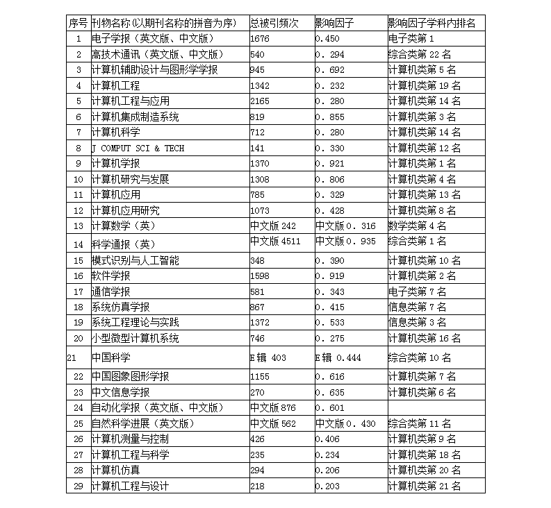 表1 供计算机科学与技术学术型硕士研究生选择的重要中文期刊