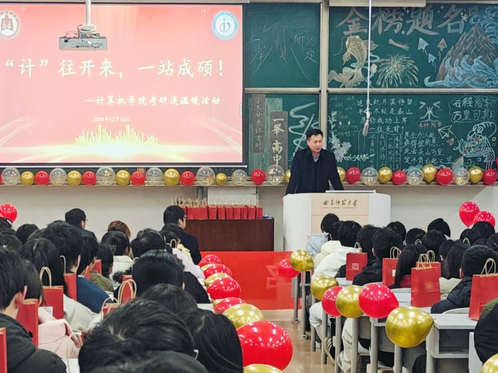 为帮助同学们舒缓备考压力,增强迎考信心,计算机学院于1216日在E105举办了考研送温暖活动学院党委书记张明洁、院长李光顺、党委副书记孙旭春、辅导员孙泽玮、杨丹丹为考研学子发放“加油包”并送上诚挚祝福。