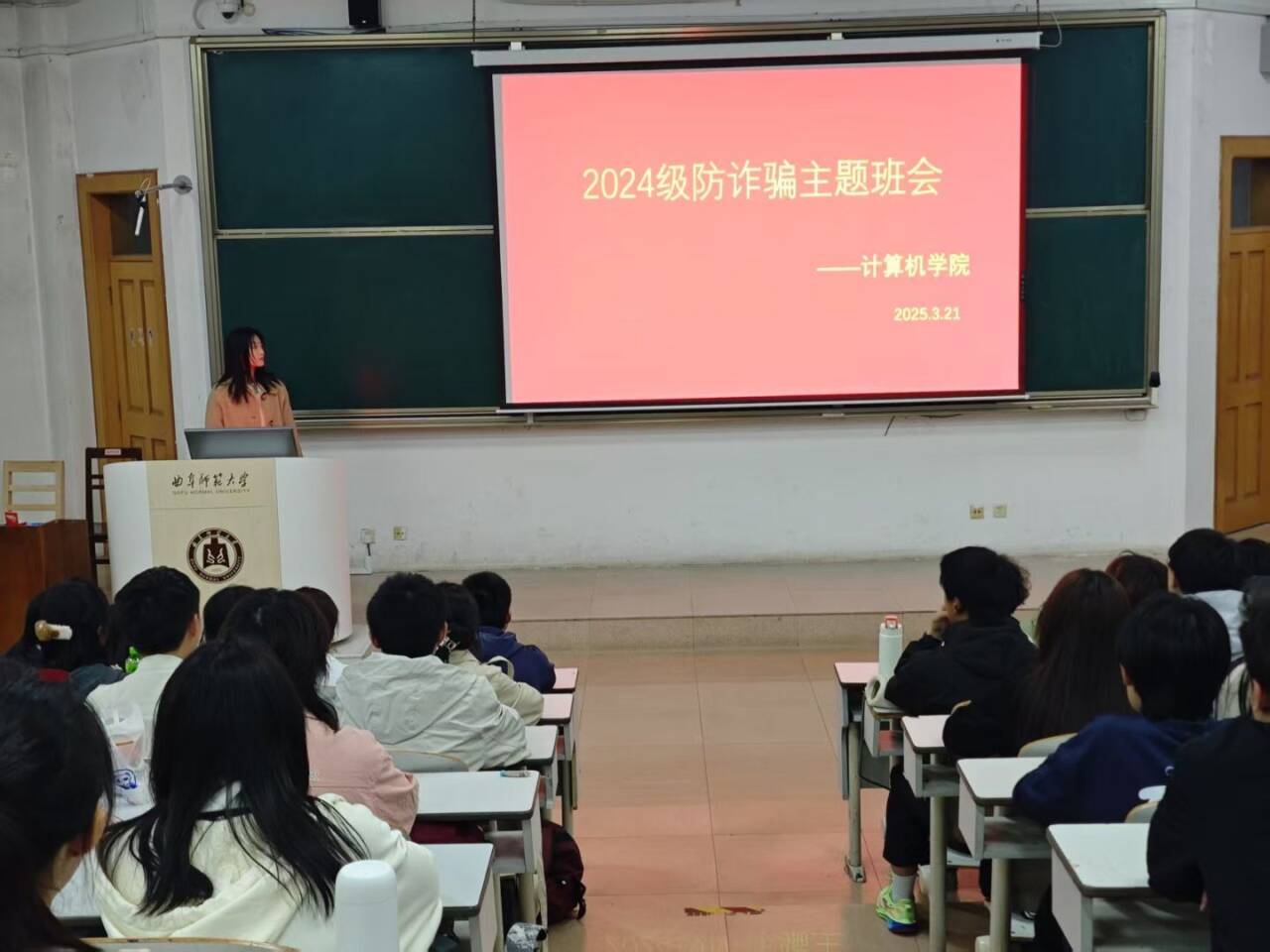 为进一步增强同学们的防诈骗意识,提升自我保护能力,3月21日,五楼自拍 在JE101教室召开防诈骗主题班会。学院辅导员老师参加此次会议, 2023级人工智能班级及2024级全体学生参与。