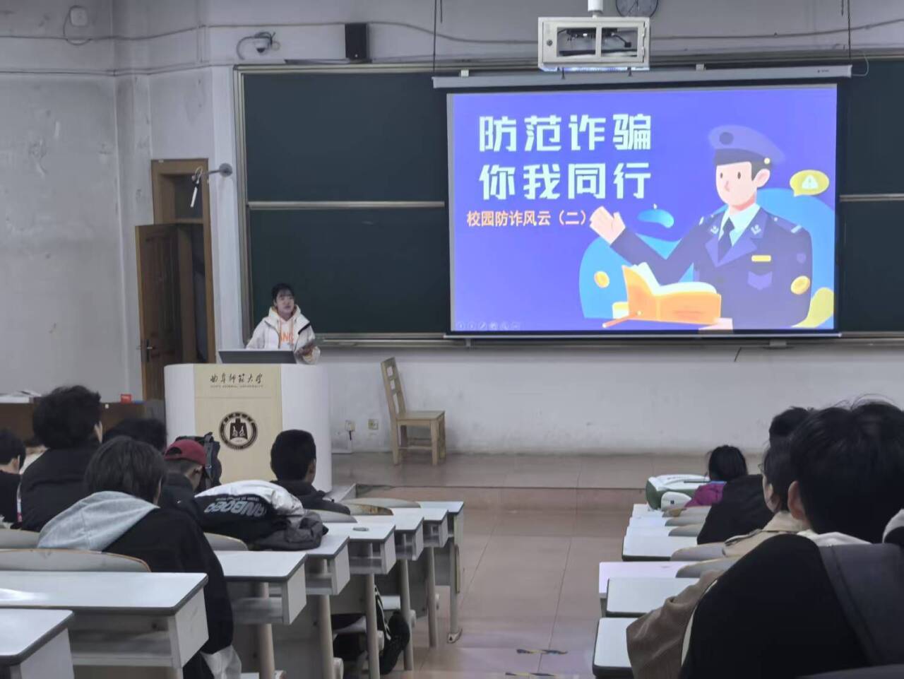 班会伊始,讲演者依据发生在学生群体中的真实诈骗案例为切入点,详细剖析了“助学金、奖学金诈骗”“网络贷款诈骗”“网络交友诈骗”等常见诈骗手段。随后,通过观看24级同学们表演的反诈短剧,同学们直观感受到诈骗分子如何利用学生社会经验不足、防范意识薄弱的特点实施犯罪。一幕幕触目惊心的案例让在场学生深刻意识到“天上不会掉馅饼”,唯有提高警惕才能避免上当受骗。
